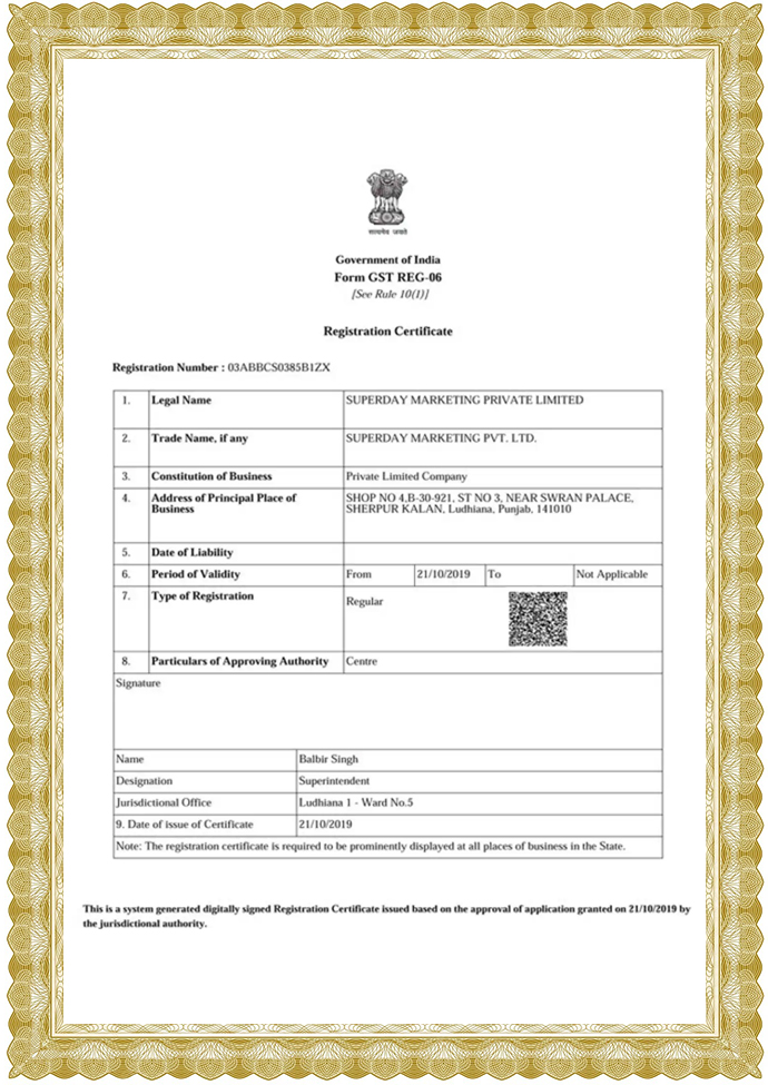 GST Certificate Punjab