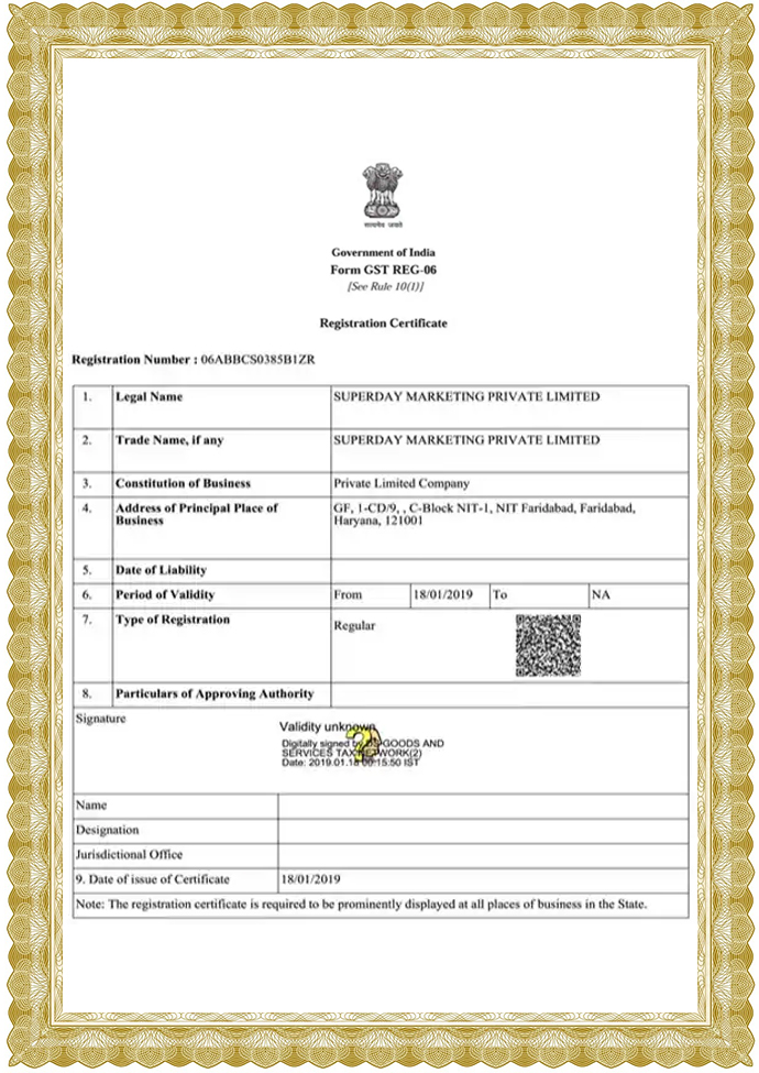 GST Certificate Harayana